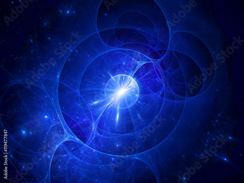 © sakkmesterke, Obraz premium Blue glowing energy source in space