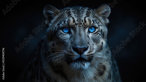 © Gilang, Obraz premium Blue Glowing Eyes of a Snow Leopard in the Dark