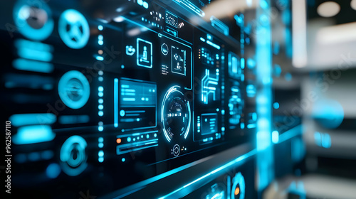 © KALEYA, Obraz premium Blue Glowing Interface Digital Display Illustration