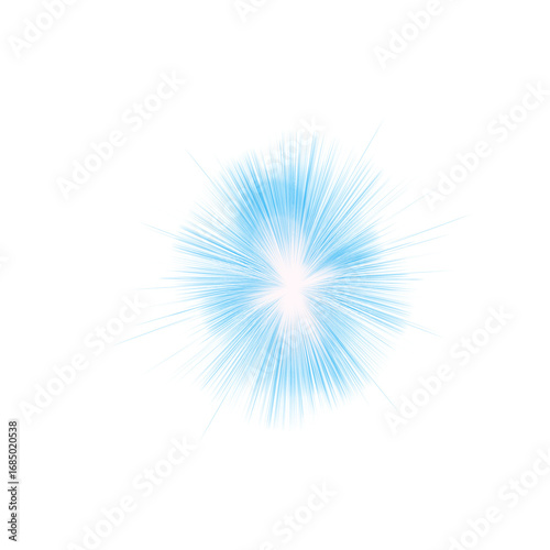 Fototapeta premium Blue glowing light burst with radiant beams and soft shining energy effect on white background. Perfect for digital art, fantasy themes, and sci-fi design projects. Vibrant glowing explosion.