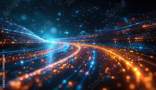 © Ghiska, Fototapeta premium Blue glowing lines on dark background with speed motion blur.