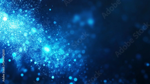 © Jameela, Fototapeta premium Blue glowing particles on dark background