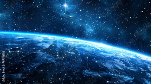 Fototapeta premium Blue glowing planet against a starry night sky evoking cosmic mystery.