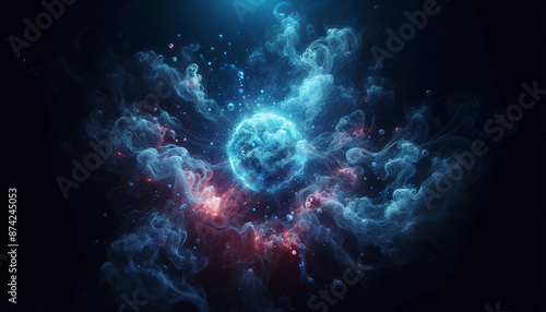 © Giuseppe Cammino, Obraz premium Blue glowing smoke on dark background