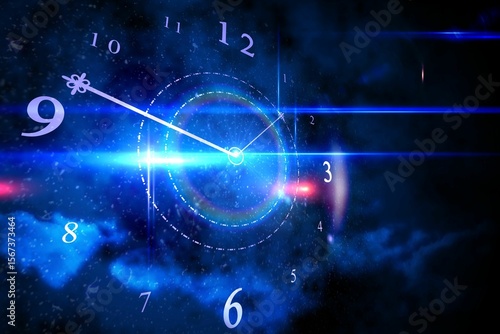 © vectorfusionart, Obraz premium Blue glowing technology design with clock