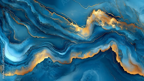 © Jane, Fototapeta premium Blue Gold Marble Sea Concept for Luxury Brand Marketing