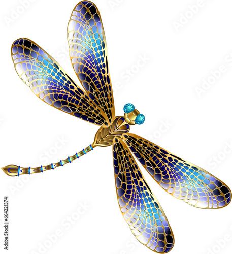 Fototapeta premium Blue golden dragonfly