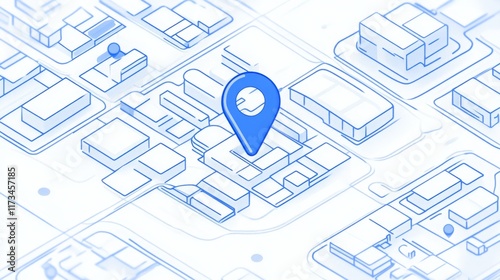 Fototapeta premium Blue GPS pin icon over a white street map, indicating location