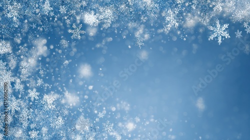 Obraz premium Blue gradient background with decorative white snowflakes around the top and left edges
