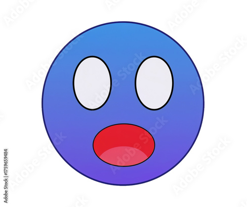 © Agie, Fototapeta premium Blue gradient emoji with surprised expression on black backdrop adds visual interest and emotion
