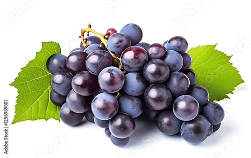 © Pakhnyushchyy, Fototapeta premium blue grape fruits with leaves isolated on white