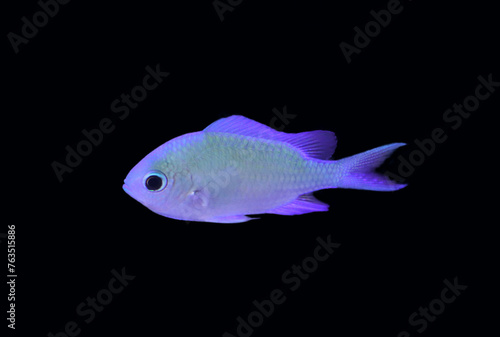 Naklejka premium blue green chromis fish ( fancy fish) swim in the water