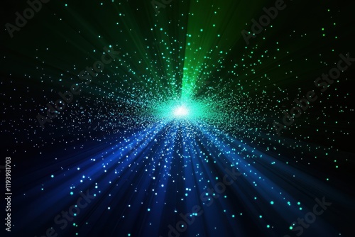 Naklejka premium Blue-green energy burst radiating from light source, dark background, digital...