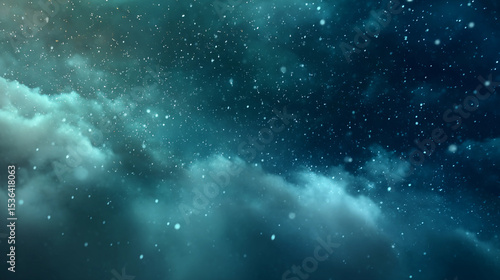 Fototapeta premium Blue-Green Gradient Night Sky with Stars and Clouds Illustration