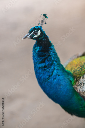 © Trygve, Obraz premium Blue green peacock standing with elegant feathers.