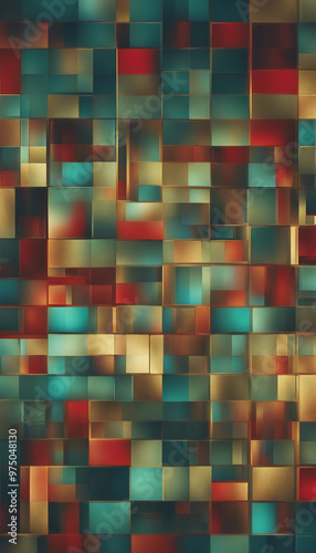 © FrameFinesse, Fototapeta premium Blue green red gold square abstract geometric presentation vertical