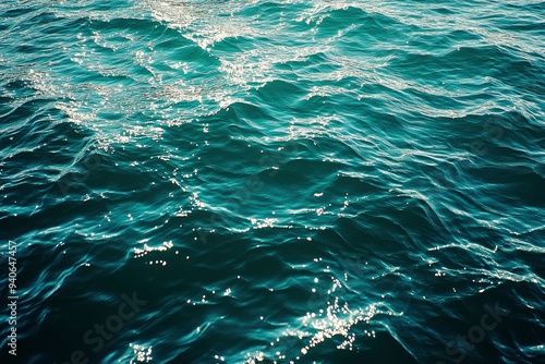 © Dzikrul Husnani, Obraz premium Blue green surface of the ocean in Catalina Island California with gentle ripples on the surface and light refracting , ai