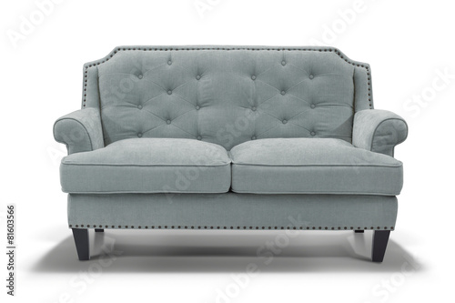 © Petinovs, Fototapeta premium Blue grey sofa with shadow isolated on white background