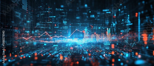 Naklejka premium Blue growth chart representing financial success with a rising data graph and...