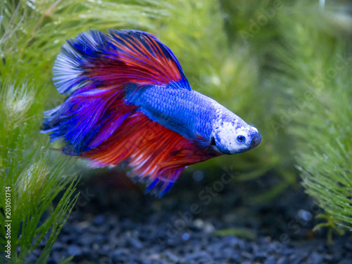 © lalalululala, Naklejka premium blue half moon Siamese fighting fish in a fish tank