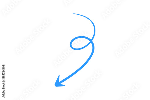 Obraz premium Blue Hand Drawn Spiraled Arrow Pointing Down for Dynamic Visual Flow isolated...