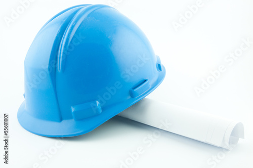 Fototapeta premium Blue hardhat on papers