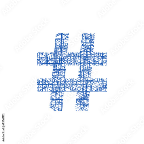 © infadel, Obraz premium blue hashtag icon in sketch style