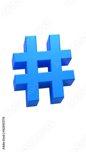 © Yasir Ghafoor, Obraz premium Blue hashtag symbol, 3D render for social media, trending topics on transparent background
