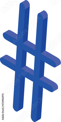 Fototapeta premium Blue hashtag symbol floating in isometric view, representing social media trends and online communication