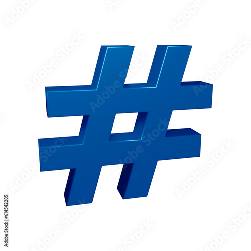 © Graphicyano8, Obraz premium Blue hashtag symbol or icon design in 3d rendering