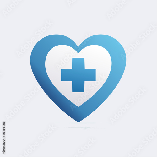 © MuhammadWicak, Fototapeta premium Blue heart shape with medical cross inside, symbolizing health and care