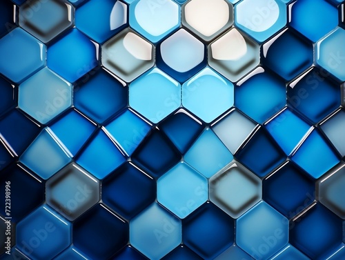 © Generative Ai, Fototapeta premium Blue hexagon abstract pattern background