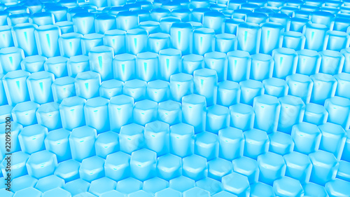 © Pierell, Fototapeta premium Blue hexagon background. 3d illustration, 3d rendering.