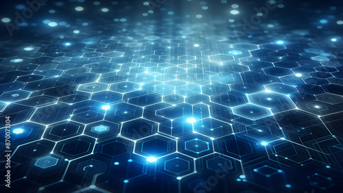 © Tanvir, Obraz premium Blue hexagons abstract background with blue lights