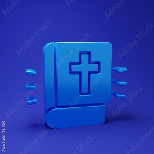 © vector_v, Obraz premium Blue Holy bible book icon isolated on blue background. Minimalism concept. 3D render illustration