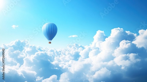 © Daisha, Fototapeta premium Blue Hot Air Balloon Soaring Above the Clouds