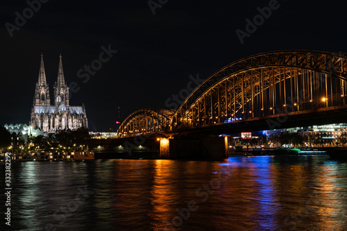 © IBenmAn, Fototapeta premium Blue hour Hohenzollern bridge and cathedral 3