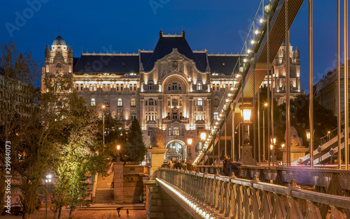 Obraz premium Blue hour in Budapest with Chain bridge. Including Danube river and Gresham...