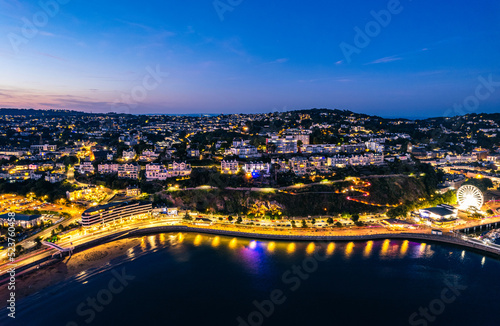 Fototapeta premium Blue Hour over Torquay Marina from a drone, English Riviera, Torbay, Devon, England, Europe