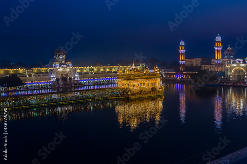 © PrabhjitSingh, Fototapeta premium Blue hour view or early morning view of golden temple, amritsar using long exposure shooting