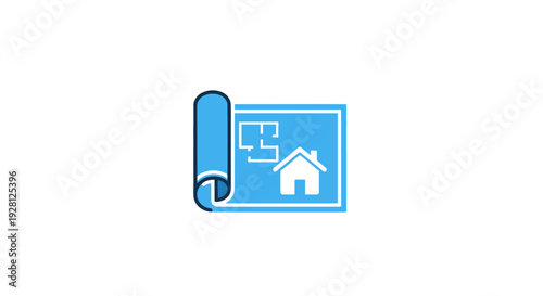 © April, Fototapeta premium Blue house plan icon on blueprint.