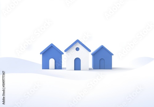 © warunthorn, Fototapeta premium Blue Houses 3D.