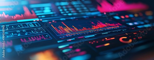 © Антон Сальников, Obraz premium Blue hued futuristic digital interface displaying complex data and technology.