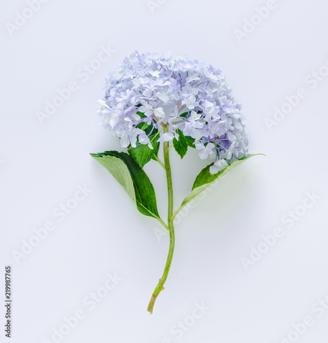 Fototapeta premium Blue hydrangea on white background. Space to write.