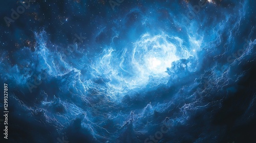 Fototapeta premium Blue hypergiant nearing the end of its life its outer layers expanding and shedding mass in waves of glowing plasma surreal cosmic aesthetic