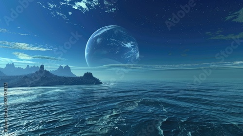 Fototapeta premium Blue hypothetical ocean planet ocean planet ocean world water world...