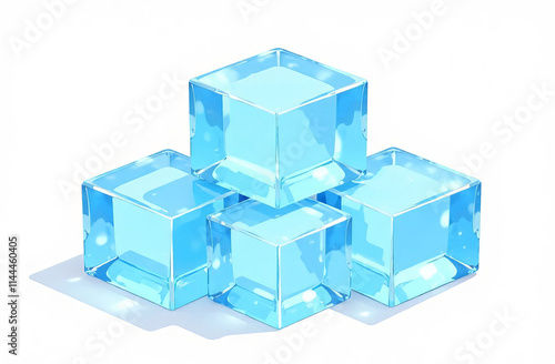 © Julia, Obraz premium Blue Ice cubes, isolate on white background.