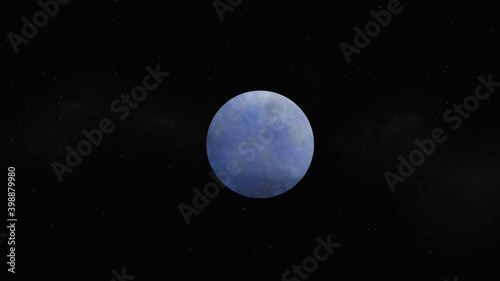 © Martin, Fototapeta premium Blue ice planet art illustration. Big water planet with two moons. Popular space exploration project for future study astrology. One big alien world cartoon game design. Rare real world picture.