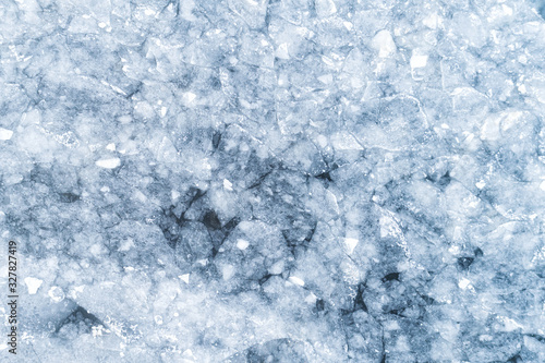 Obraz premium Blue ice texture. Frozen lake with abstract icy patterns aerial top view.