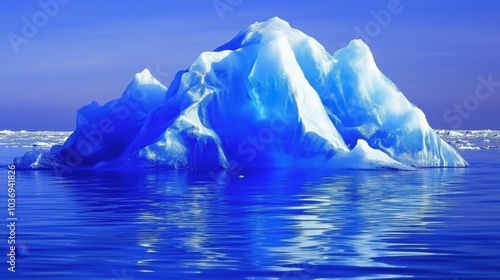 © Puttipong, Fototapeta premium Blue Iceberg Floating in Calm Waters